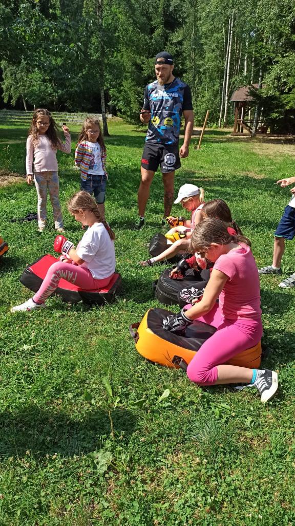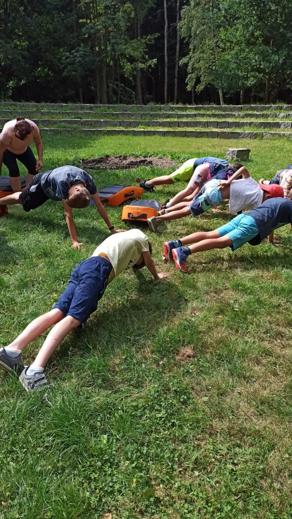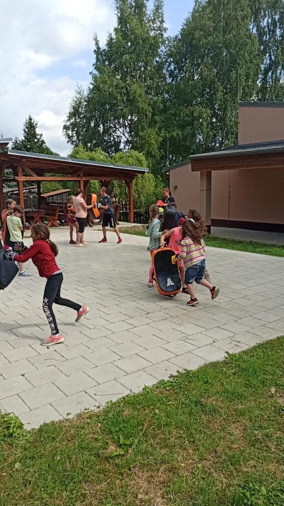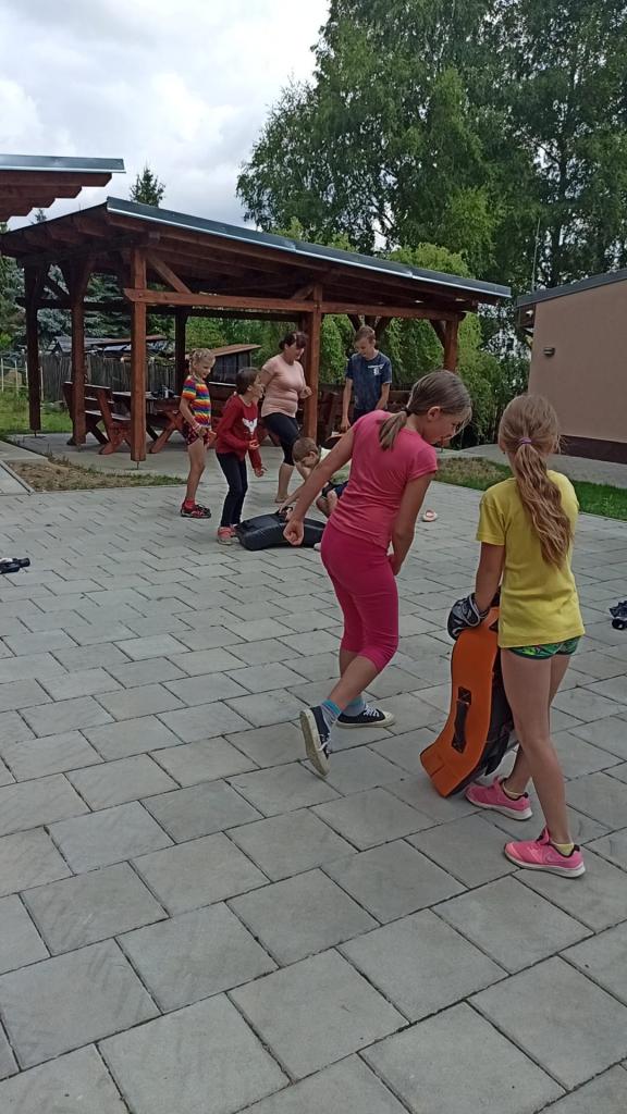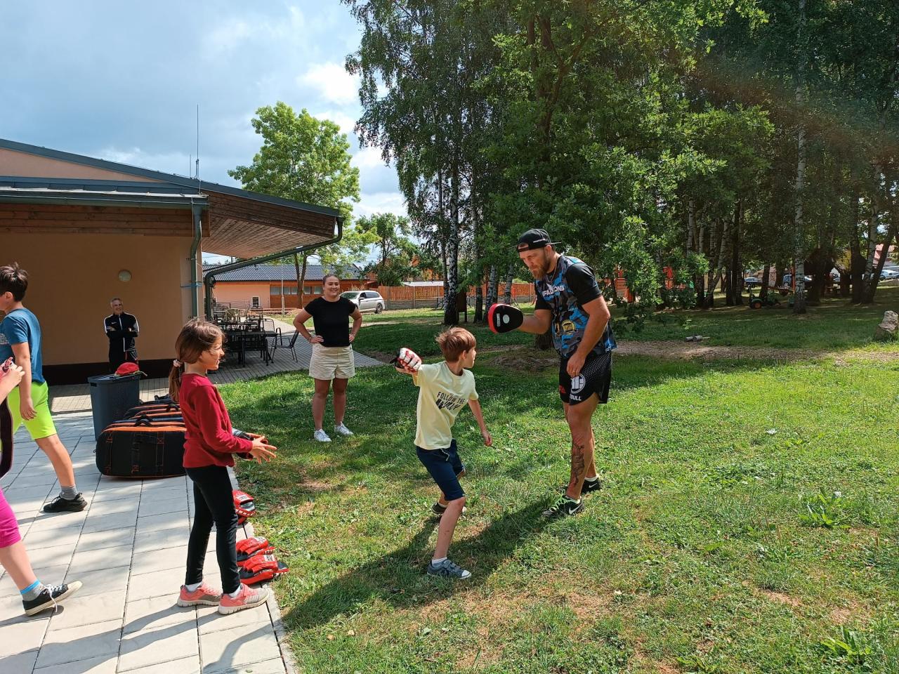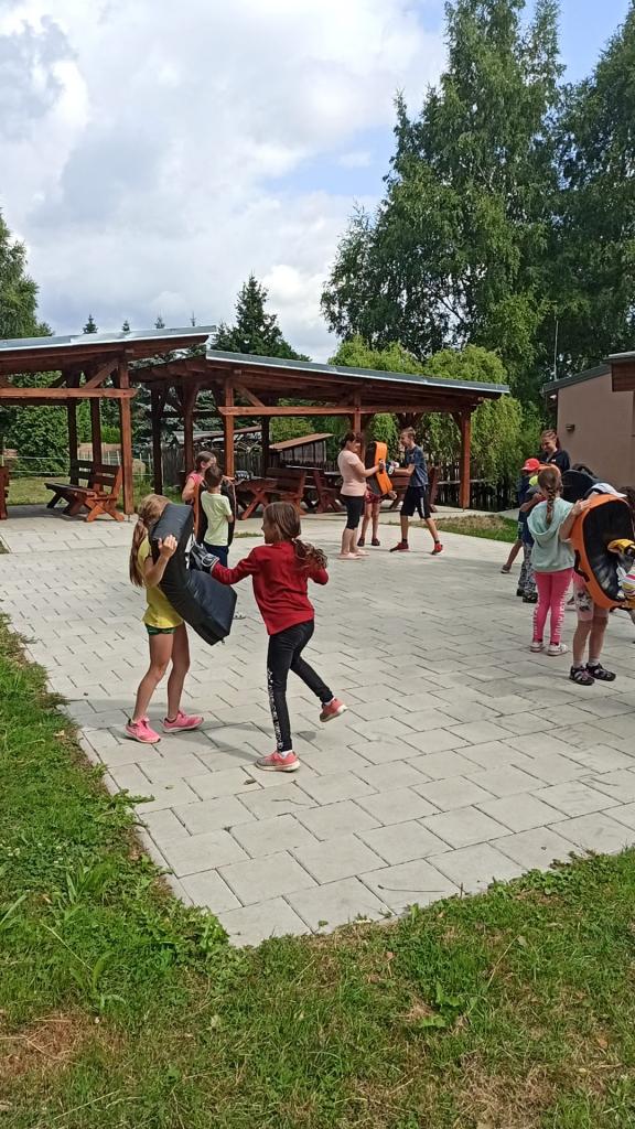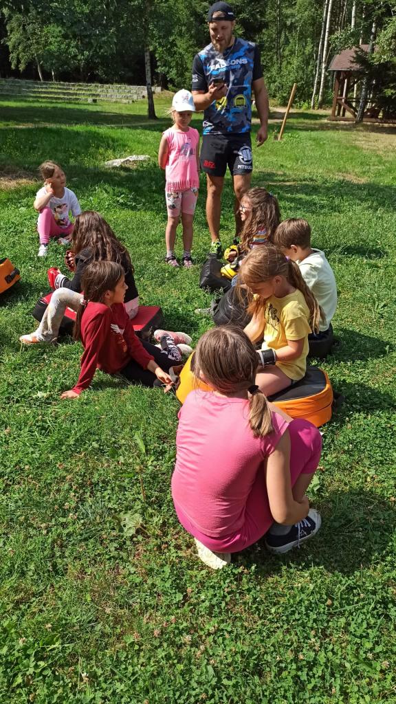 První běh tábora se uskutečnil v termínu od 17.-21. července. Naše táborová vedoucí Veronika opět připravila pro děti pestrý program. Jedním z nejzajímavějších zážitků bylo setkání s čerstvým šampiónem, bojovníkem MMA panem Stevnem Krtem.