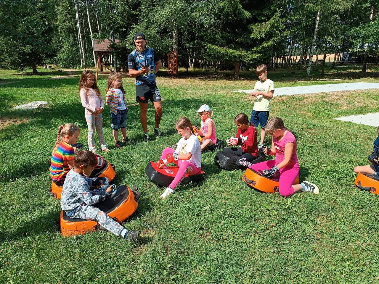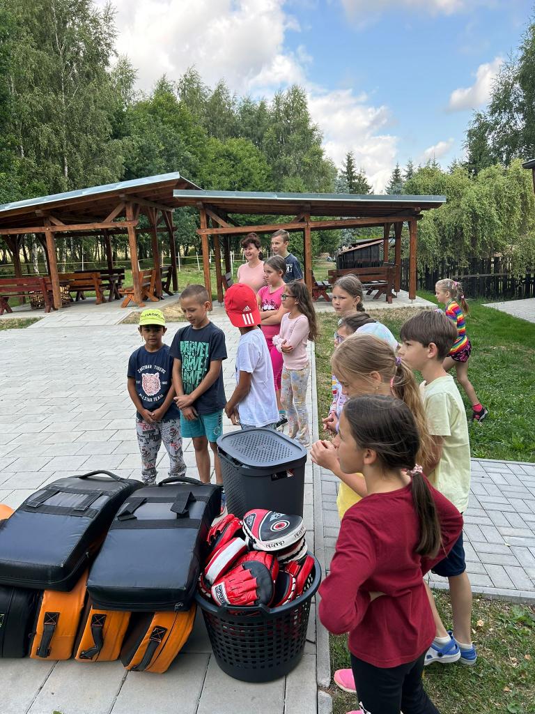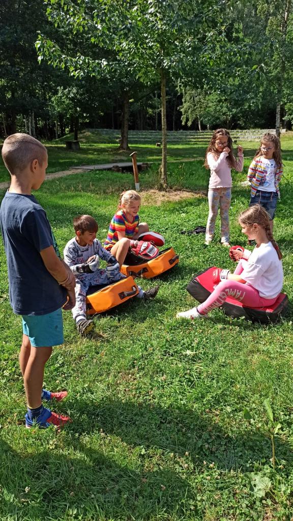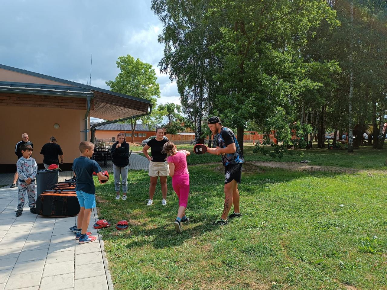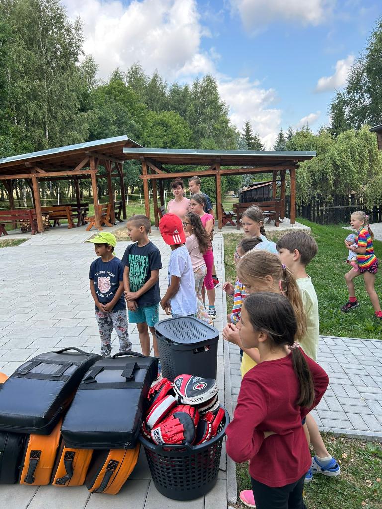 První běh tábora se uskutečnil v termínu od 17.-21. července. Naše táborová vedoucí Veronika opět připravila pro děti pestrý program. Jedním z nejzajímavějších zážitků bylo setkání s čerstvým šampiónem, bojovníkem MMA panem Stevnem Krtem.