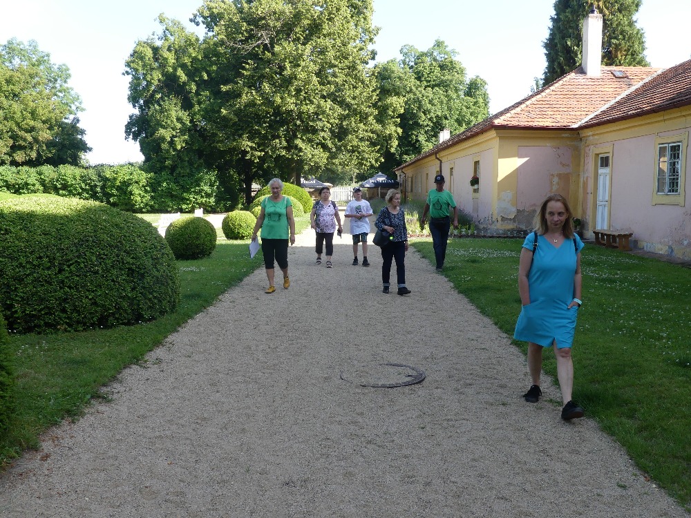 První zastávkou byl zámek Stekník, stojící uprostřed chmelnic. Nádherná růžová zahrada a upravený zámek.