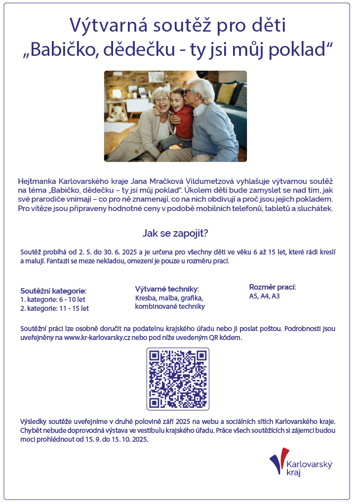 Výtvarná soutěž na téma „Babičko, dědečku – ty jsi můj poklad“ vyhlášená hejtmankou Karlovarského kraje.